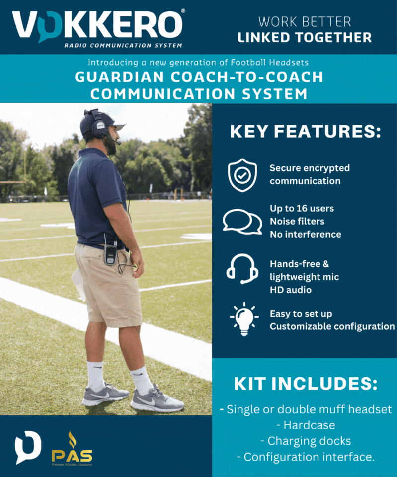 "The Vokkero headsets have made our lives much easier in terms of practice and game day organization. The charging dock allows our staff to grab their personalized headset on the way out to the field each day, and we are able to easily adjust and program each individual device. The headsets require no set-up or testing, and we know they will be ready to go every time we take the field."