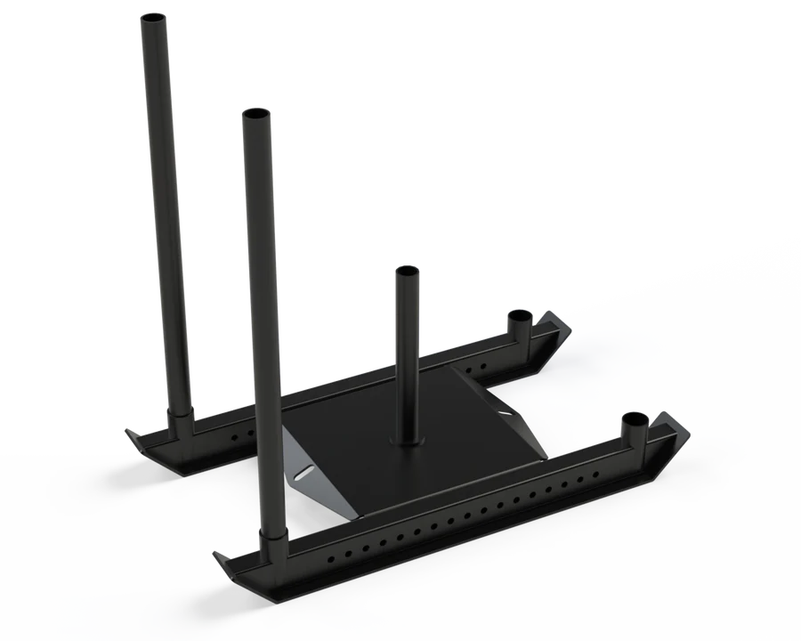 American made tough as nails push pull sled. Designed for heavy weight and the ability to use inside or out on the field. This is a great training tool for developing explosive power and speed. Has 4 handle sockets to swap sided with quickly and laser cut holes for attaching a pull rope or strap (not included).